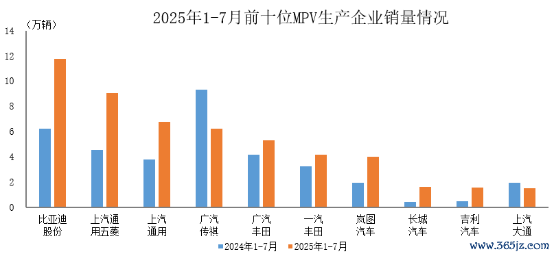 中汽协:1-7月销量排名前十位的MPV生产企业共销售52.1万辆中汽协:1-7月销量排名前十位的MPV生产企业共销售52.1万辆