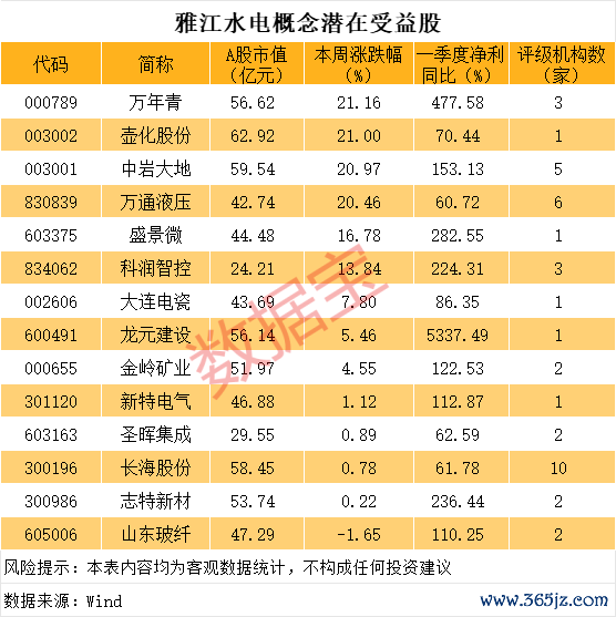 雅江水电概念潜在受益股出炉雅江水电概念潜在受益股出炉