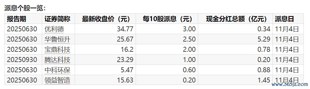 A股分红派息转增一览(11月3日):6股今日股权登记顶级配资A股分红派息转增一览(11月3日):6股今日股权登记