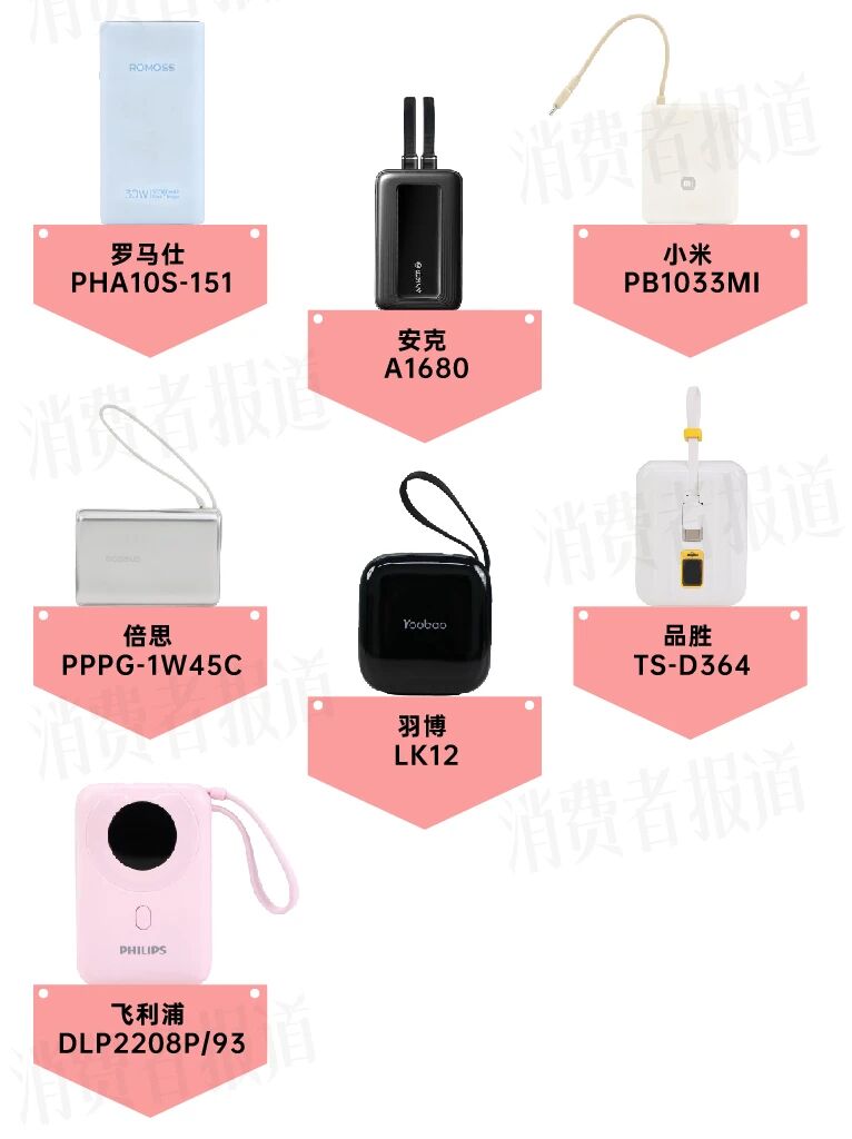 “双十一”又来了,正值大家选购心头好之际。为了解答以上有关移动电源的疑问,近期《消费者报道》选购了市面上销量较高的7款移动电源(电池容量均为10000mAh),集中进行了使用体验。品牌及产品型号包括小米PB1033MI、罗马仕PHA10S-151、倍思PPPG-1W45C、品胜TS-D364、安克A1680、飞利浦DLP2208P/93、羽博LK12。