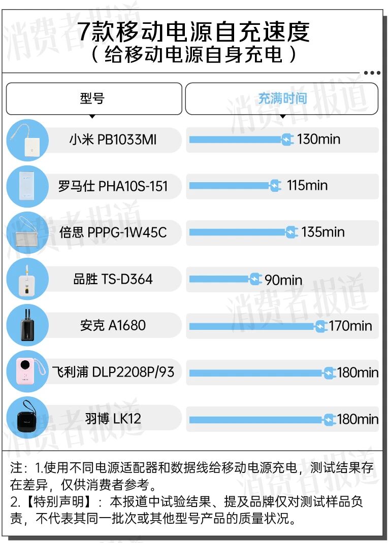 需要注意的是,充电时间仅统计各款移动电源给小米14手机充电的情况。实际使用中,移动电源给不同容量、品牌、型号的手机充电,测试结果存在较大差异。此次测试具有一定主观性,仅供消费者参考。