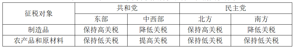 表2、20世纪20年代末美国分党派分地区的关税诉求