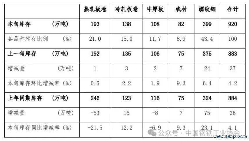 中钢协:9月上旬钢材社会库存920万吨,环比上升4.2%中钢协:9月上旬钢材社会库存920万吨,环比上升4.2%